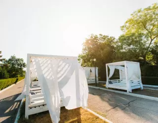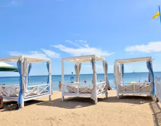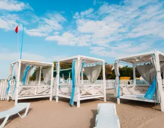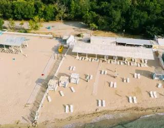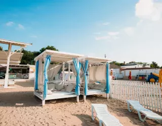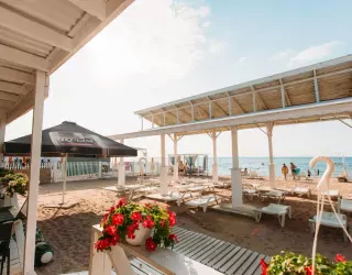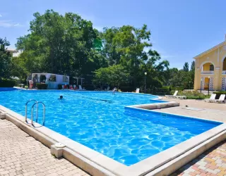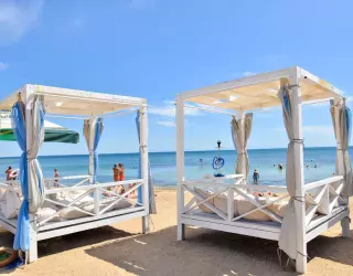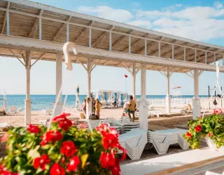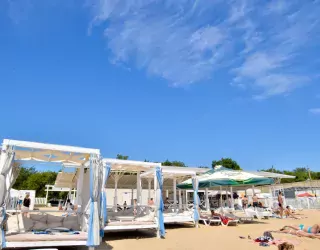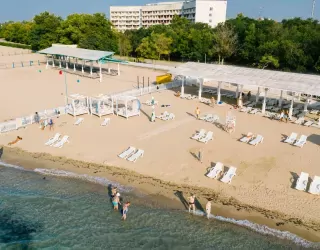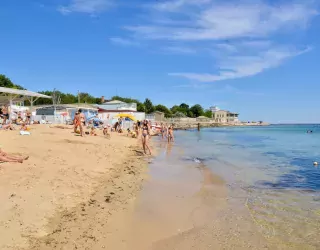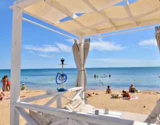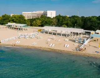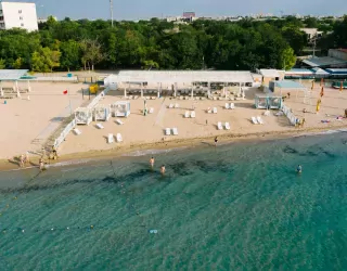 Песчаный благоустроенный пляж находится на расстоянии 500 метров от парк-отеля в Евпатории. Осуществляется трансфер на пляж.Описание пляжа