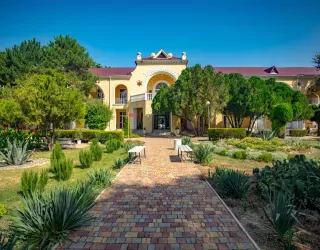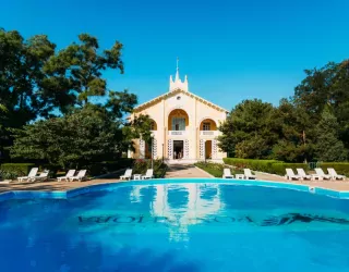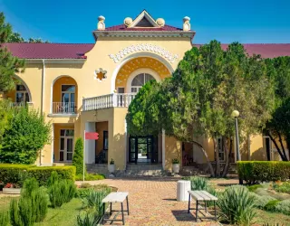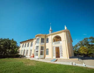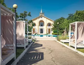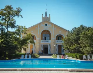 Парк-отель «Романова» находится в курортной зоне города Евпатория. Здание отеля – памятник архитектуры, построенный в 1914 году. При его реконструкции было приложено немало усилий, чтобы сохранить его первозданный внешний и внутренний облик.