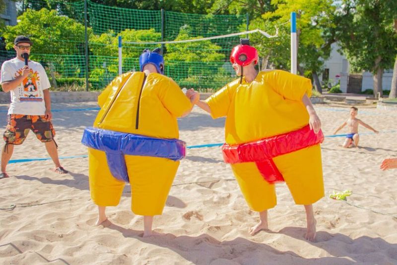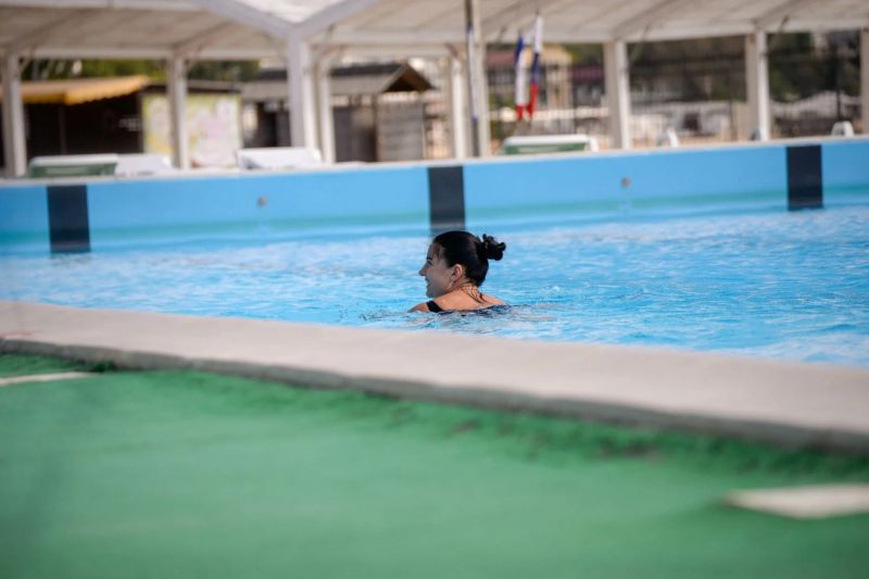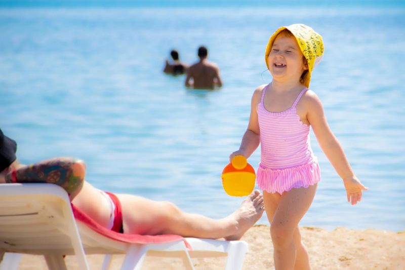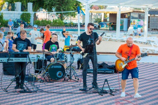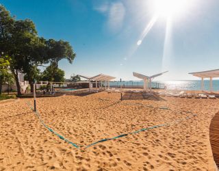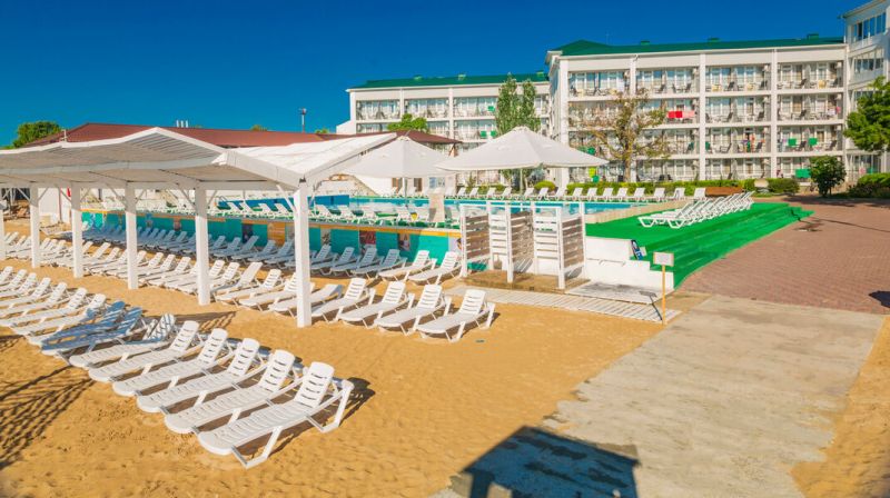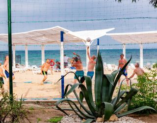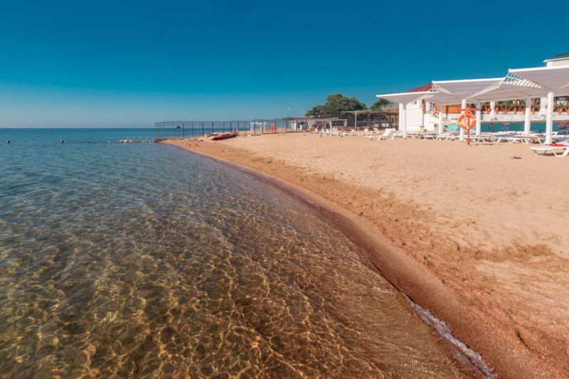 Песчаный, в 50 м от санатория. Имеются навесы, шезлонги, лежаки, летнее кафе, раздевалки, питьевые фонтанчики, душ, туалет, работает спасательный пост.