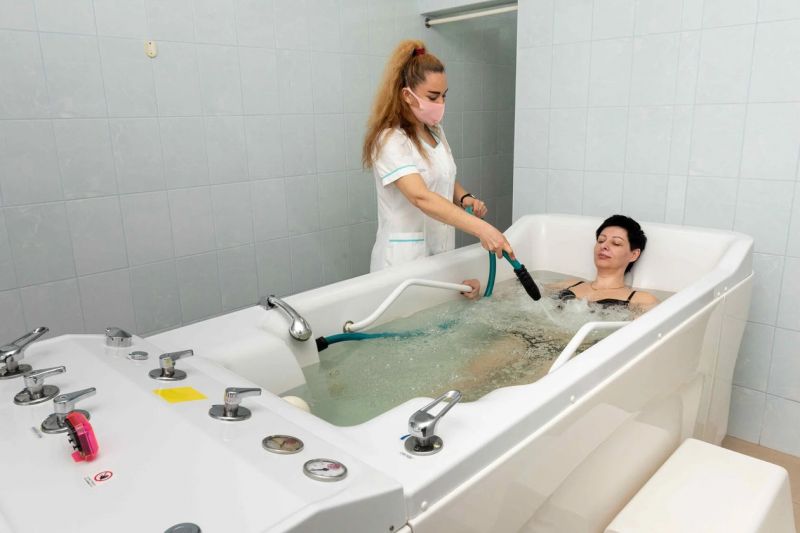 Ванны общие: жемчужные, ароматические, вихревые, минеральные, или, при наличии противопоказаний к общим – вихревые отдельно для верхних и нижних конечностей, лечебный душ, сухие углекислые ванны (1 вид по назначению врача)