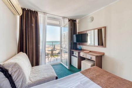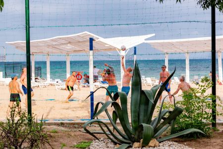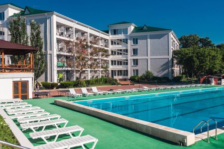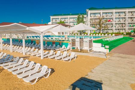 Самолетом до аэропорта г. Симферополь, далее на рейсовом автобусе «Симферополь-Евпатория» до остановки «Магазин Новая площадь», далее на рейсовом №4 до остановки «Стадион Авангард», далее пройти пешком 1,5 км до санатория.