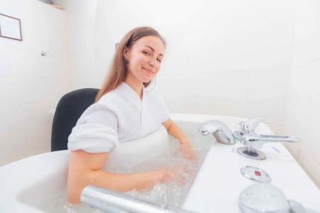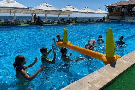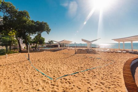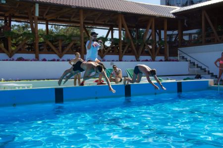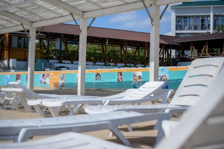 Автобусом до автовокзала г. Евпатория, далее до на автобусе №6, 9 до остановки «Орленок», далее пройти пешком 410 м до санатория.