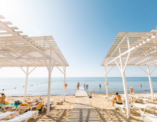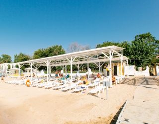 - благоустроенный охраняемый пляж с чистым песком, шезлонгами и навесами от солнца, занимает территорию 1500 квадратных метров