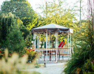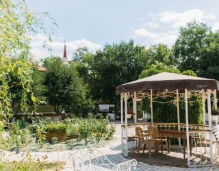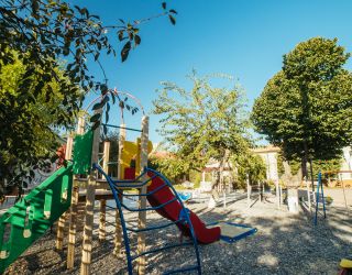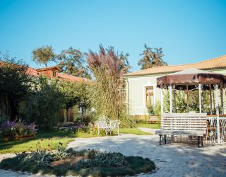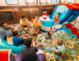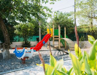 Игровая площадка оборудована сертифицированным безопасным игровым комплексом. Спортивные и активные гости имеют возможность позаниматься на турнике, брусьях и шведской лестнице; поиграть в теннис, бадминтон и дартс.