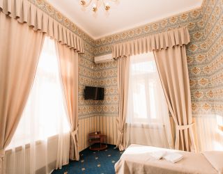 Номерной фонд отеля «Федор Шаляпин» в Евпатории насчитывает 23 комфортабельных номера. В комплектацию каждого номера, независимо от категории, входит: телевизор, кондиционер, холодильник, санузел (душевая кабина, умывальник, унитаз). Холодная и горячая вода круглосуточно.
