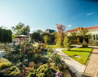 На благоустроенной территории гостиничного комплекса находятся детская игровая и спортивная площадки, охраняемая бесплатная открытая автостоянка.