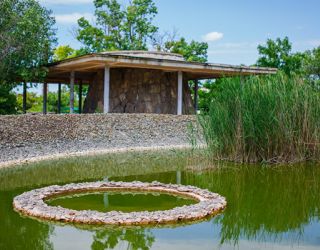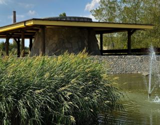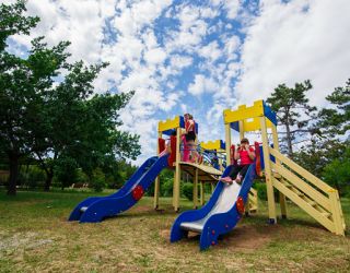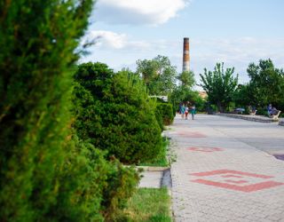 Поездом до ж/д вокзала г. Евпатории, далее на автобусе №9 до остановки «Санаторий Таврия», далее 700 м до комплекса.
