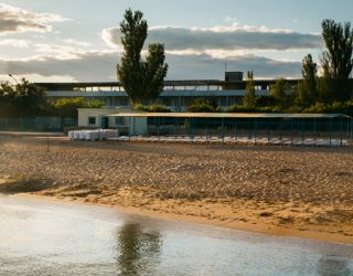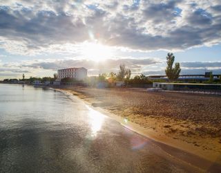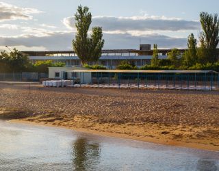 Пляж песчаный, оборудованный в 800 метрах от санатория.