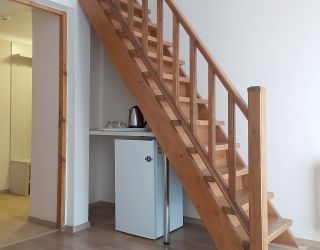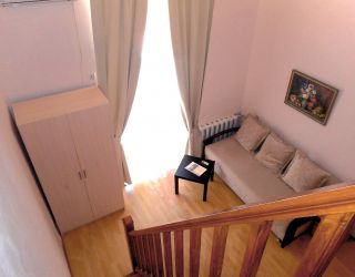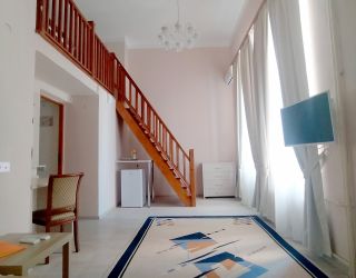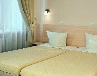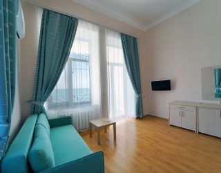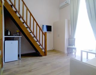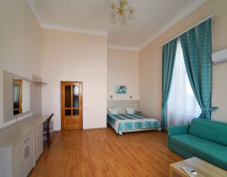 Двухэтажное здание жилого корпуса с флигелями – памятник культурного наследия – расположился на территории с благоустроенным внутренним двориком. Гостей ожидают комфортабельные номера, рассчитанные на размещение более 40 человек. Номера, среди которых встречаются и двухуровневые, выдержаны в светлых тонах и укомплектованы современной мебелью, оснащены кондиционером, телевизором, санузлом с душевой кабиной.
