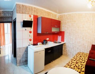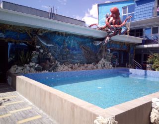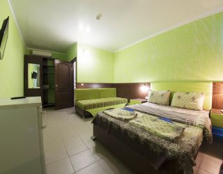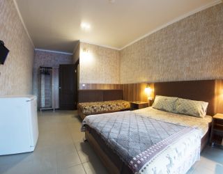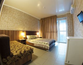 Трехэтажное здание гостевого дома «Золотая рыбка» рассчитано на 50 гостей. Находится на закрытой охраняемой территории. Все номера гостевого дома со статусом «эконом-класса» укомплектованы необходимой мебелью, оборудованы кондиционерами и холодильниками, ТВ и wi-fi, имеется отдельный санузел с душем.