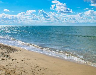 Песчаный городской пляж через дорогу от гостевого дома оборудован раздевалками, туалетом и душевыми, работает кафе и предлагаются водо-моторные виды спорта. До пляжа всего 150 м.