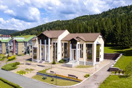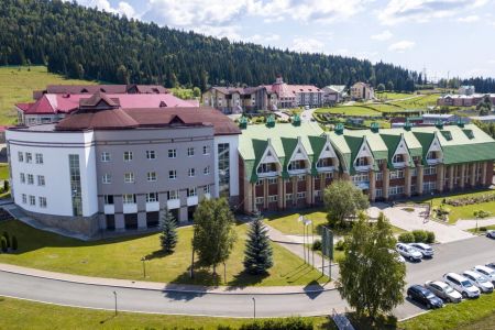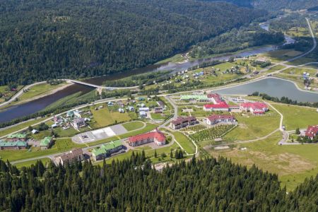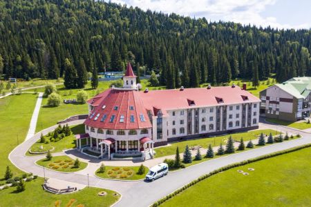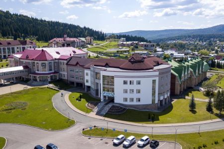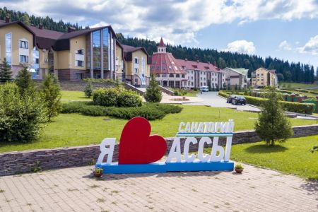 Самолетом до аэропорта г. Уфы, далее на автобусе №101 до ж/д вокзала, далее на электричке до станции 102 км (Ассы), далее пройти 960 м до санатория.