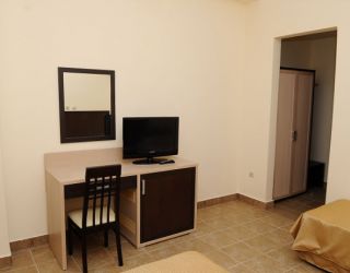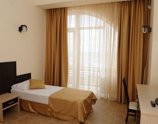 Трехэтажный корпус отеля (без лифта) занимает небольшую благоустроенную территорию. Единовременно в отеле могут разместиться до 80 человек. Гостей ожидают однокомнатные номера Стандарт и двухкомнатные Люкс, оснащенные душем, кондиционером и необходимой бытовой техникой.