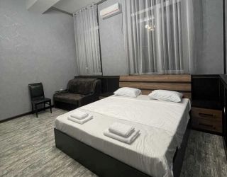 Отель разместился на улице Вокзальная. В распоряжении гостей однокомнатные и двухкомнатные номера с всеми удобствами. В светлых комнатах есть кондиционер, плазменный телевизор, мини-холодильник, в каждом номере предусмотрен собственный санузел с душем. Среди услуг — беспроводной интернет.