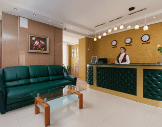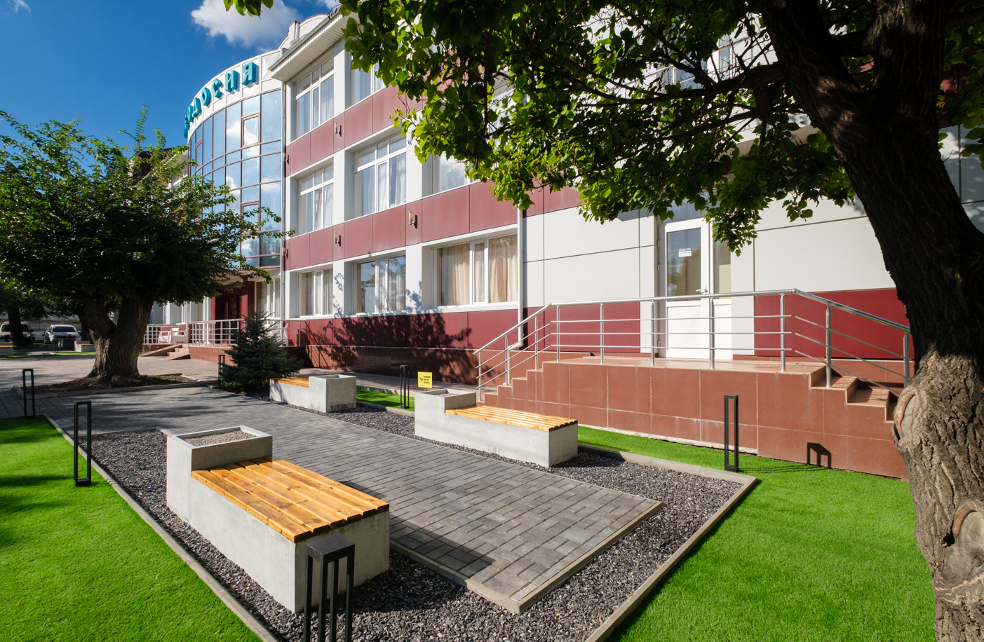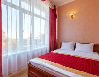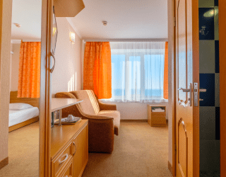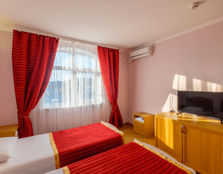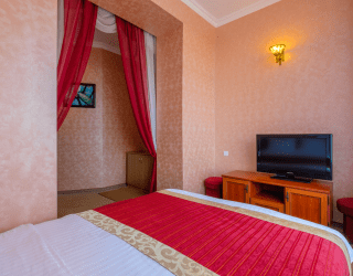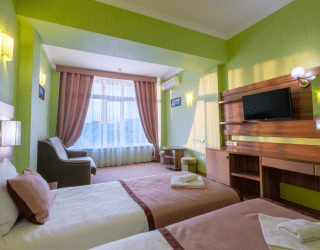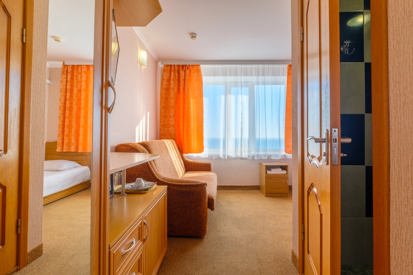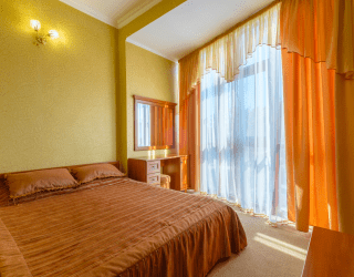 4-этажное здание без лифта, включает в себя 77 номеров. Все номера, независимо от категории, укомплектованы необходимой мебелью, оборудованы санузлом с душем, мини-сейфом, кондиционером, ТВ, холодильником, чайником, есть доступ к wi-fi.