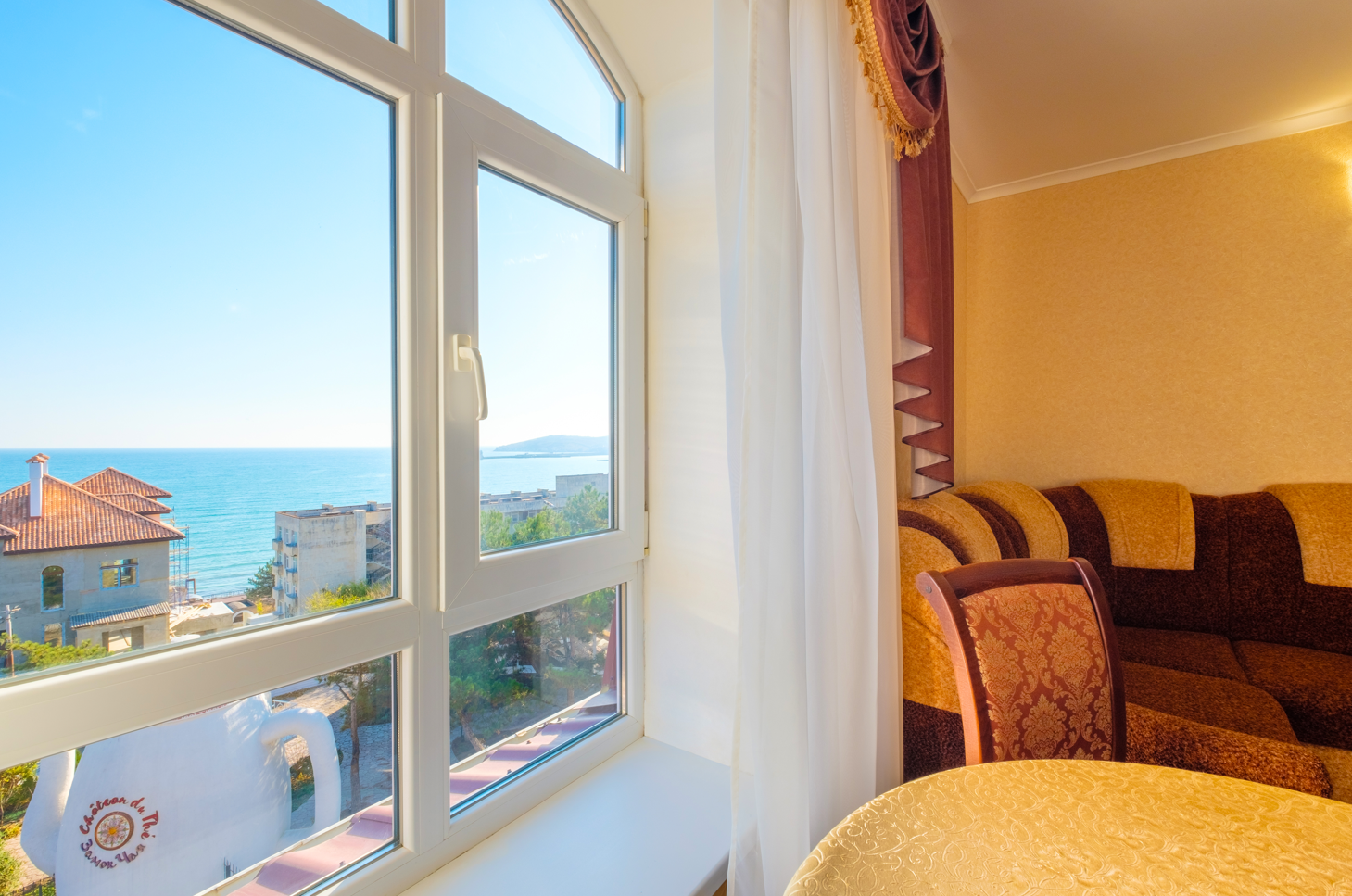 Поездом до ж/д вокзала г. Феодосии, далее на автобусе №4,2 до остановки «Улица Пушкина», далее 157 м до отеля.