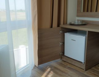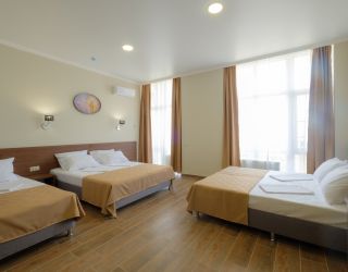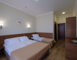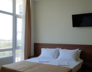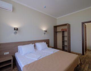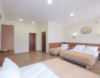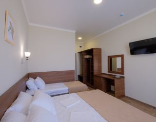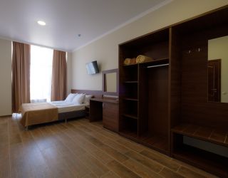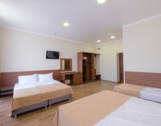 Для гостей подготовлены современные и просторные номера, укомплектованные всем необходимым для комфортного проживания. Для гостей установлен шкаф, туалетный столик и плазменный телевизор. Также, каждый номер оснащен собственной ванной комнатой и балконом.