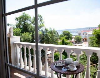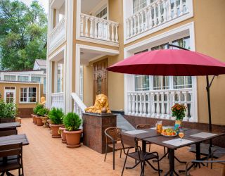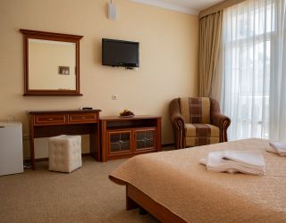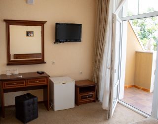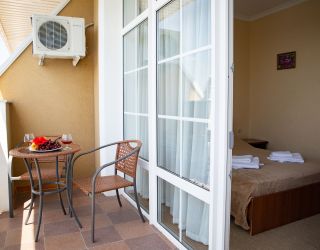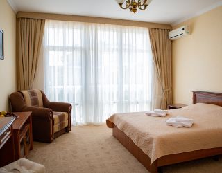 Четырехэтажная вилла разместилась на уютной закрытой территории прямо на берегу песчаного пляжа. Номерной фонд вмещает до шестидесяти отдыхающих и предлагает гостям комфортабельные номера категории Стандарт и Полулюкс с панорамными окнами. Оформленные в приятной цветовой гамме номера оснащены кондиционерами, современными телевизорами, сейфами и холодильниками, в некоторых из них есть балконы с видом на море. Ежедневно в ресторане при отеле для гостей сервируют комплексный завтрак, также на территории имеется летняя терраса. В распоряжении отдыхающих крытый бассейн с пресной водой, банный комплекс с финской сауной и хамамом, возле корпуса есть охраняемая автостоянка, в отеле подключен беспроводной интранет. Для деловых гостей организован конференц-зал.