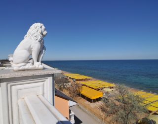 Вилла «Золотой лев» расположена в северной части города Феодосии в районе железнодорожной станции Айвазовская на первой береговой линии. До исторического и культурного центра города – всего за пять-десять минут дороги на автомобиле или общественном транспорте. Центральный автовокзал, откуда регулярно отправляются рейсы в аэропорт Симферополя, находится в десяти минутах ходьбы от отеля.