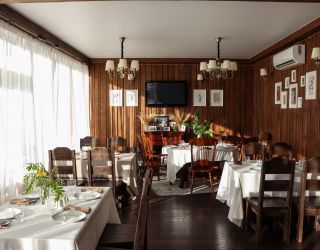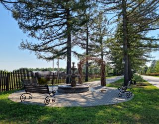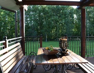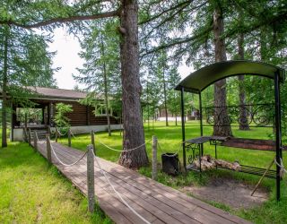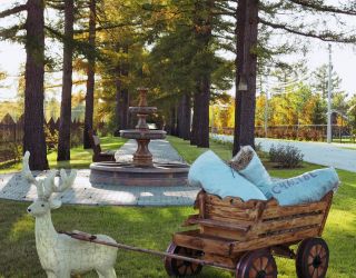 Благоустроенная территория гостиничного комплекса с аллеями, скамейками и беседками для отдыха расположена в границах лесного хозяйства. Усадьба включает в себя 24 уютных одноэтажных домов-срубов, рассчитанных на 2, 3 или 4 спальни, а единовременно в загородном комплексе могут разместиться более 150 гостей. Все дома оснащены санузлом с душевой кабиной, собственной парной, просторной гостиной, мини-кухней с микроволновой печью, набором посуды и самоваром. Возле каждого ома есть мангал и парковка для автомобилей.