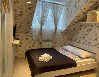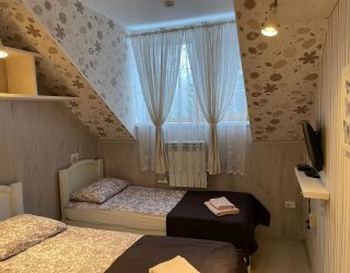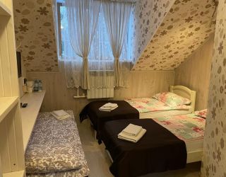 Для заселения гостям предлагаются номера разного уровня комфорта и вместимости, а также отдельно стоящий коттедж для большой компании. В комнатах установлена необходимая мебель для отдыха и хранения одежды, есть зеркало, телевизор со спутниковыми каналами, телефон, электрический чайник, работает Wi-Fi. Деревянный коттедж оснащен собственной кухней для приготовления еды, баней и бассейном.