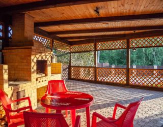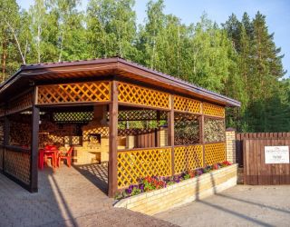 На территории загородного комплекса работает кафе, где подают блюда европейской и азиатской кухни. С 8.00 до 10.00 утра ежедневно сервируется завтрак, который гости могут заказать дополнительно. На свежем воздухе оборудована зона барбекю - открытая беседка с мангальной зоной. Для организации банкетов предусмотрен банкет-холл. Для частного транспорта отдыхающих на территории отеля предоставляется парковка.