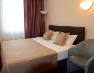 Отель расположен в трехэтажном массивном корпусе с мансардным этажом. Небольшой номерной фонд рассчитан на 34 гостей. В их распоряжении классические одноместные и двухместные номера с собственной ванной комнатой. Номера укомплектованы необходимой техникой: везде есть кондиционер, телевизор, электрочайник и чайный набор посуды.