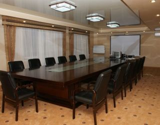 Мультимедийное оборудование, полная звукоизоляция, система кондиционирования. По уровню оснащенности конференц-зал полностью соответствует всем стандартам и требованиям, предъявляемым к конференц-услугам. Площадь зала превышает 50 квадратных метров, что позволяет с комфортом разместить 20-30 человек. Интерьер, выдержанный в приятных светлых тонах, оптимально сочетается с качественной мебелью и современной аппаратурой, настраивая на работу участников встреч различных форматов: совещаний, конференций, бизнес-тренингов, презентаций и т.д.