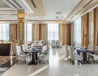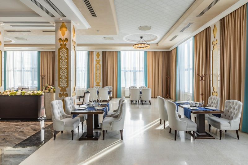 Визитная карточка отеля – ресепшн и лобби – украшены зеркальной мозаикой, мрамором и полированным гранитом. Освещение сочетается с зеркальным потолком с золотыми вставками и стеклянными люстрами. Лифты отеля также украшены золотым орнаментом и зеркалами.