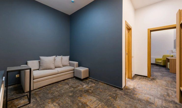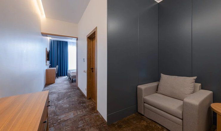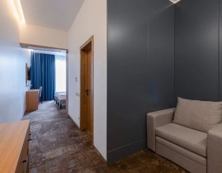 Номерной фонд расположился в 2-этажном здании с панорамным остеклением. Интерьер комнат выполнен в стиле современной классики, с обилием синих оттенков и дерева. К услугам гостей телевизор с кабельными каналами, кондиционер, электрический чайник, телефон. Санузел индивидуальный для каждого номера. Для постояльцев предоставляется чистое постельное белье, полотенца, гигиенические принадлежности и фен.