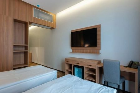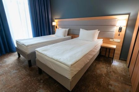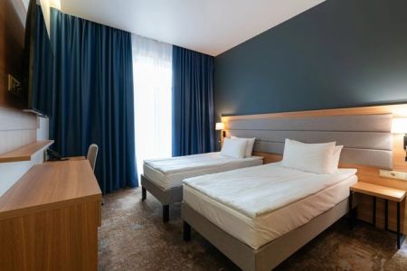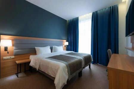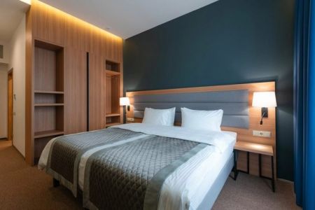 Поездом до ж/д вокзала г. Махачкала, далее на маршрутке №15 до остановки «Пр-т Расула Гамзатова, 64», далее на маршрутке №45 до остановки «ТЦ Апельсин», далее пройти 1,47 км до отеля.