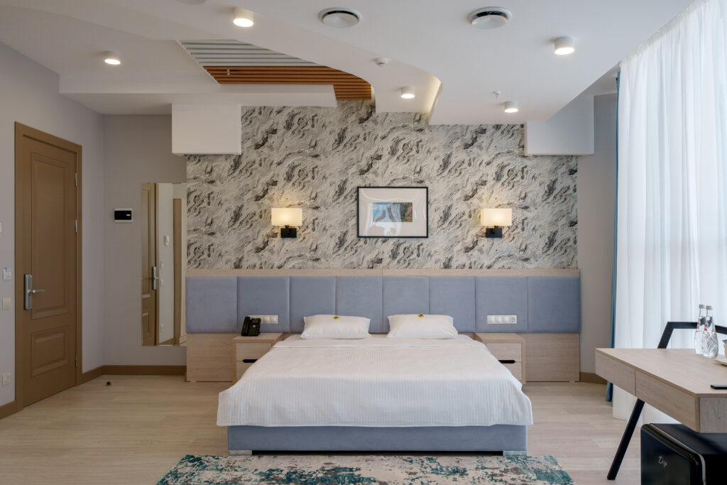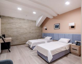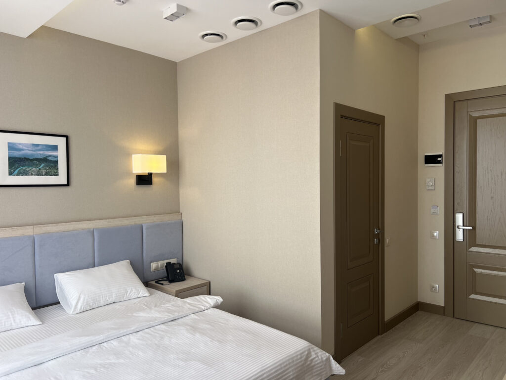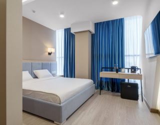 Многоэтажный корпус отеля, выстроенный в современных формах, возвышается на улице Магомеда Ярагского. К услугам гостей однокомнатные номера с удобствами. В комнатах – стильные интерьеры, оформленные в светлых тонах, есть кондиционер, телевизор, электрочайник. Санузел с ванной оснащен необходимыми косметическими принадлежностями.