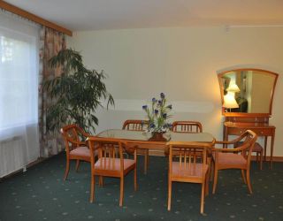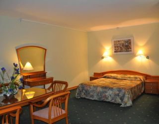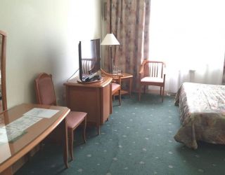 Отель – это двухэтажное здание с мансардной крышей и небольшой огороженной территорией, построенное в 2002 г. за рекордно короткий срок –2 месяца. Номерной фонд обставлен мебелью из натурального дерева светлых тонов.