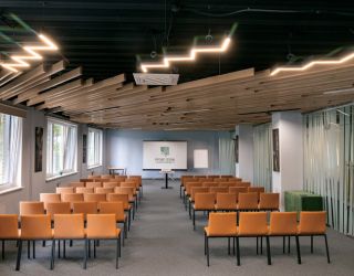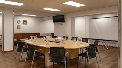 Зал с дневным освещением оснащён всем необходимым оборудованием для небольших конференций и переговоров на 50 человек.