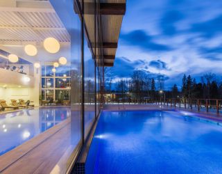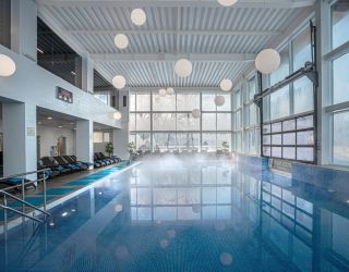 К услугам гостей 5 теплых бассейнов, включая открытые, формата инфинити с зоной для загара. В термальном комплексе предусмотрен акватонический бассейн, системой противотоков, каскадных и тропических душей, аэролежаками, душем впечатлений, а также хамамом, финской сауной, травяной комнатой и ледяным фонтаном. При каждом бассейне предусмотрены парные, а в термальном комплексе - prosecco bar. В теплое время года работает аэросолярий на панорамной террасе. Для любителей SPA на Курорте представлены три банных комплекса с купелями и сеновалом, а также разработаны специальные уходы by Elemis и программы оздоровления.