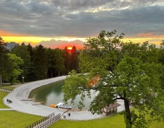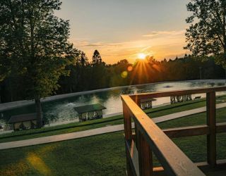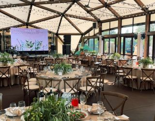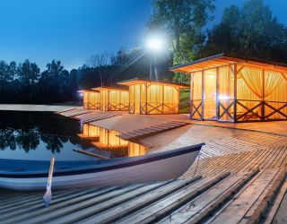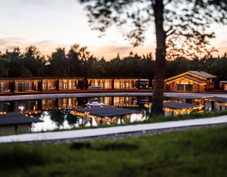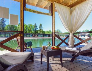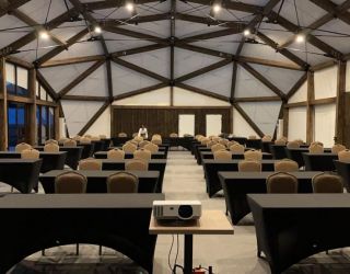 Просторный шатёр с панорамным остеклением идеально подойдёт для проведения банкетов с особым статусом на 200 человек, а терраса на 120 кв.м. с завораживающим видом на озеро и закаты может быть сервирована под фуршеты или Гала-ужины под звёздным небом. В шатре предусмотрена сцена, отдельная уборная, а также кухня.