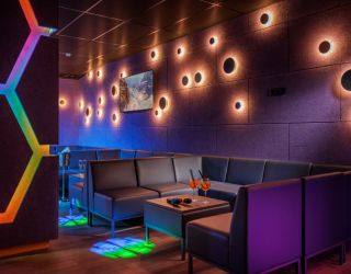 Современный банкетный зал с панорамными окнами и возможностью проведения банкетов до 500 человек. Элегантный и сдержанный интерьер создаст приятную атмосферу для любого мероприятия или торжества. В зале предусмотрена сцена с профессиональным оборудованием, а также welcome-зона с барной стойкой для приветственного фуршета и танцев.