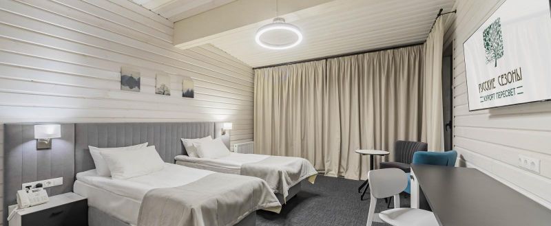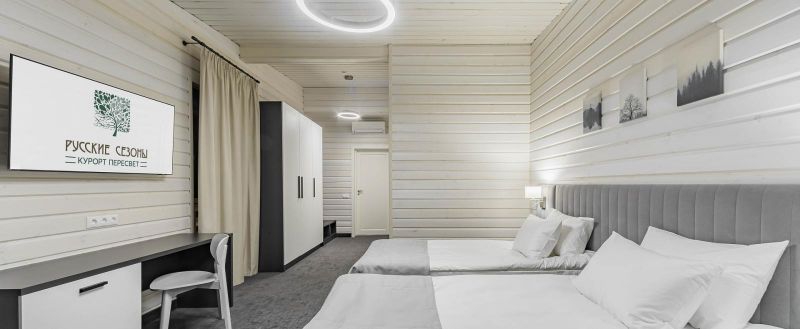 «Русские Сезоны Курорт Пересвет» — это настоящий подмосковный курорт, раскинувшийся на 73 гектарах земли. Дорога до него по обновленному Ярославскому шоссе занимает немногим более часа. Отель располагает 232 номерами различных категорий. Инфраструктура отеля удовлетворит даже самого взыскательного гостя. Помимо двух ресторанов, боулинга на 4 дорожки, бильярда, караоке, оснащенного по последнему слову техники, прекрасного SPA и современного тренажерного зала, собственного кинотеатра на 80 мест, отель может предложить своим гостям три бассейна, включая крытый, длиной 25 метров, и открытый, прогреваемый круглый год до 28 градусов.