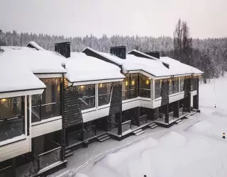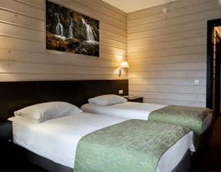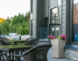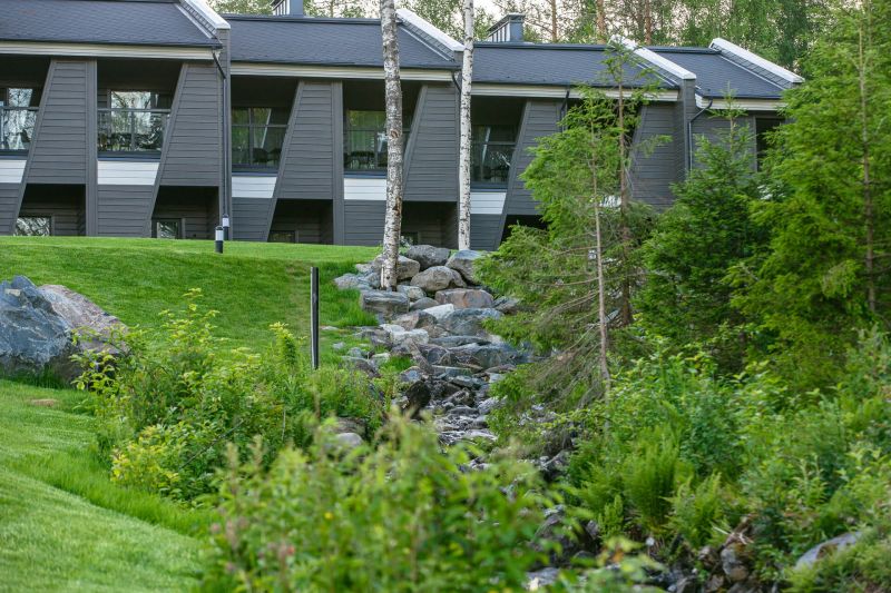 Сидя в удобном кресле, вы можете бесконечно наслаждаться карельскими пейзажами. В трех корпусах отеля — 61 двухместный номер площадью 20 кв. м (с учетом площади террасы либо балкона — 24 кв.м), включая номер для людей с ограниченными возможностями.