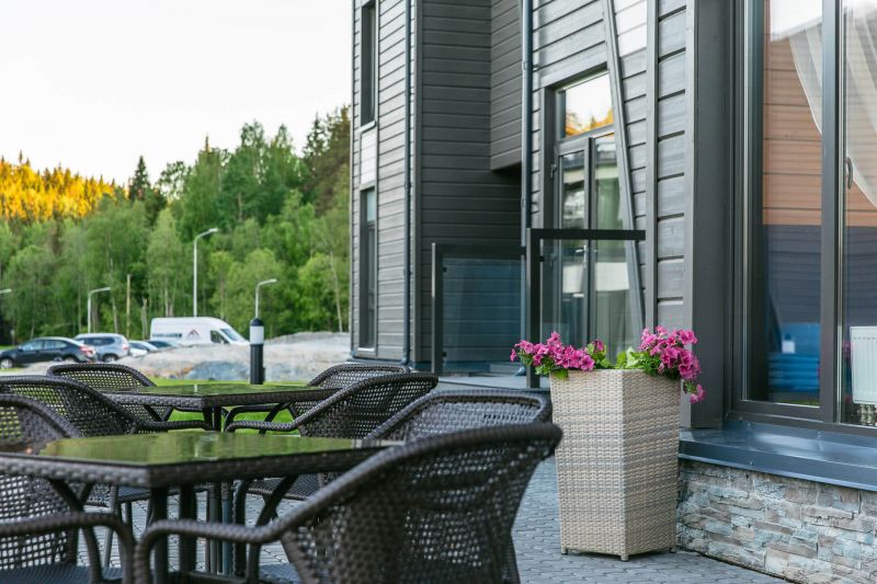 Отель находится в сердце Карелии. В нем царит гармония спокойного отдыха, а в воздухе разливается аромат хвойного леса.