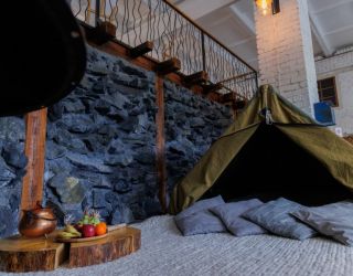 Эко-отель «Удивительное рядом» находится в Карелии, в городе Сортавала. За панорамными окнами – карельские елки, в камине – завораживающее потрескивание дров, легкое эхо в темноте, рядом – экспонаты, шунгитовая пещера, картины, небольшой фуршет с бутылочкой холодного шампанского или карельской клюквенной настойки.