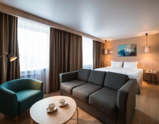 Четырехэтажный корпус гостиницы находится рядом с одной из главных магистралей района — улицей Октябрьской. Гостей ожидают уютные современные номера со стильным дизайном, выполненным дизайн-студией Viva-Design. В каждом номере есть собственная ванная комната с душем, плазменный телевизор, кондиционер, фен, электрочайник.