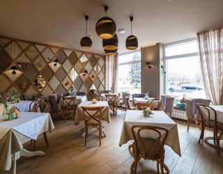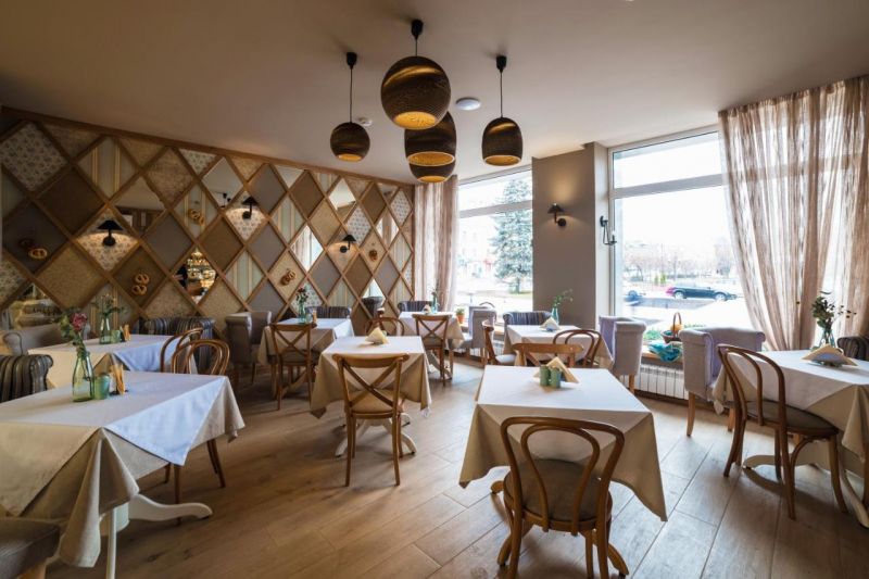 На территории гостиницы расположены городское кафе «Буфет» с панорамными окнами и оздоровительный банный комплекс, включающий