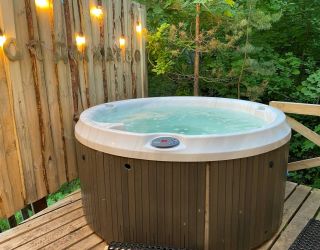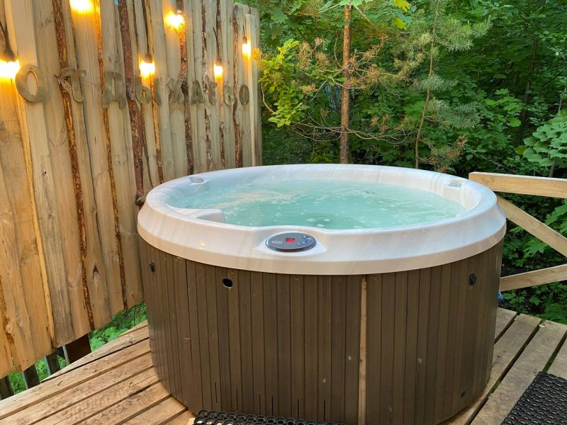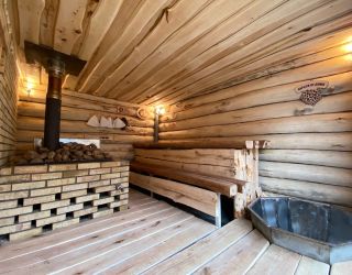 На территории работает банный комплекс «Медвежья берлога». Большая, жаркая баня на дровах оборудована панорамным окном и купелью внутри парной. На террасе установлены банный чан и места для отдыха. В распоряжении отдыхающих березовые веники, травяной чай и сеновал.