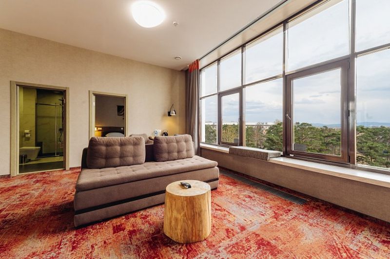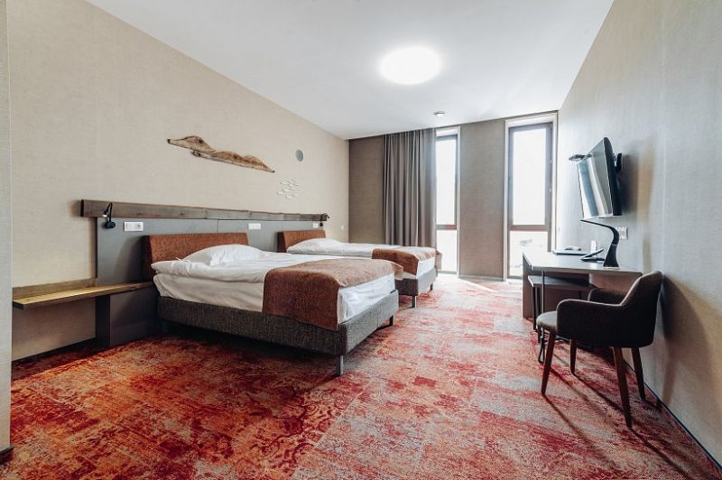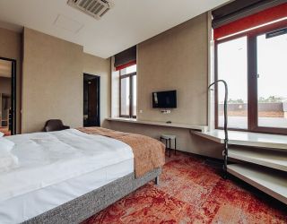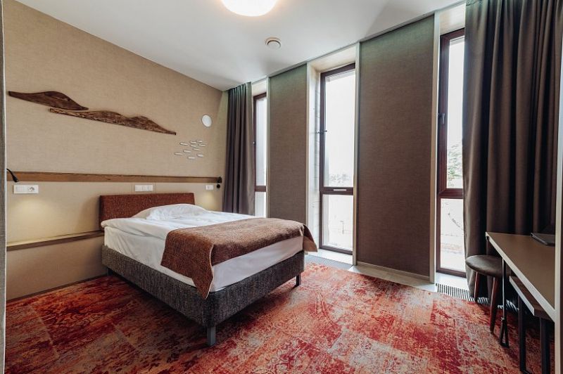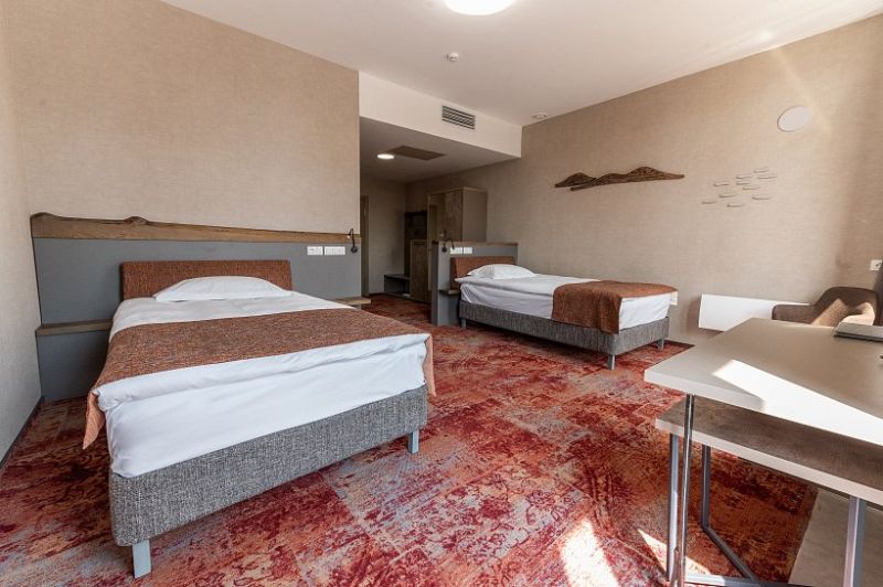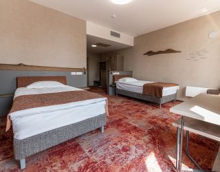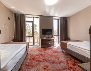 Трехэтажный современный корпус отеля разместился на улице Лимонова напротив парка. К услугам гостей 2-местные номера Twin и Double со всеми удобствами, а также Апартаменты с собственной кухней и балконом. В каждом номере имеется санузел с душем, где для отдыхающих подготовлены косметические наборы, уютные халаты и тапочки. В комнатах есть плазменный телевизор, кондиционер, доступен беспроводной интернет.