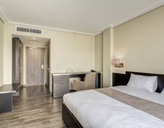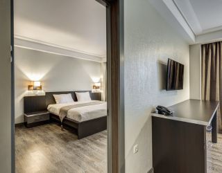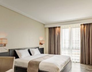 Пятиэтажный корпус отеля с панорамным остеклением выстроен в современных формах. Обширный жилой фонд единовременно может принять почти 250 человек. Гостей ожидают комфортабельные номера со светлым стильным интерьером. Среди удобств — индивидуальный санузел с душем, сплит-система, плазменный телевизор, фен.