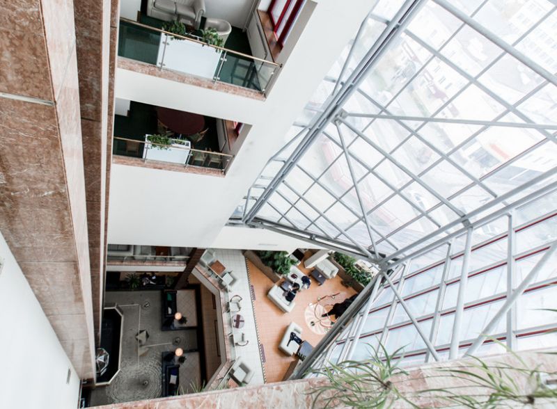 Небольшое помещение на четвертом этаже отеля - идеальное место для проведения мероприятий в формате «Круглый стол». Ничего лишнего - спокойное, тихое пространство с отличным видом на центр города и Зимний сад отеля.