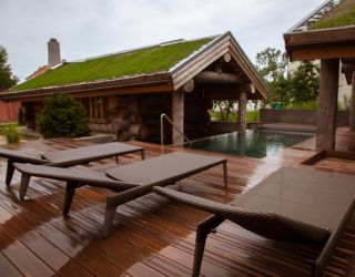 В отеле работает кафе с европейской кухней, к услугам отдыхающих собственный банный комплекс с русскими банями. Бани оборудованы собственной парной, местами для отдыха и душевыми. Также в банном комплексе есть терраса с шезлонгами и джакузи с гидромассажем под открытым небом.