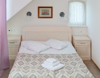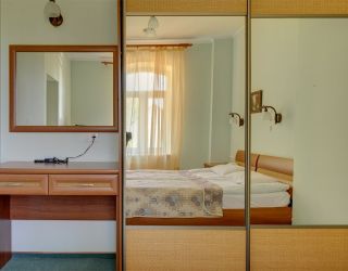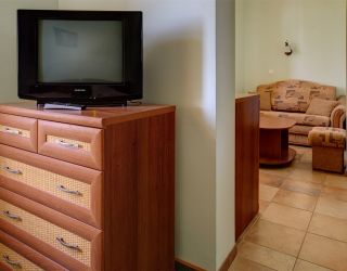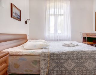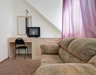 Трехэтажный корпус отеля занимает закрытую благоустроенную территорию. В распоряжении гостей однокомнатные и двухкомнатные номера. В каждом предусмотрен собственный санузел с душем, в комнатах есть электрочайник, мини-холодильник и телевизор.