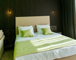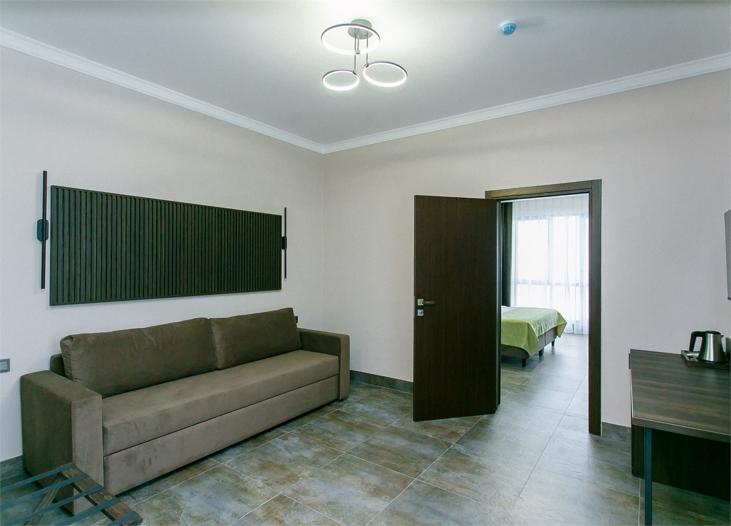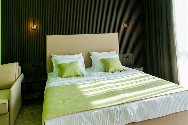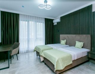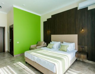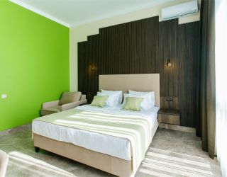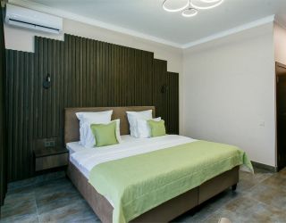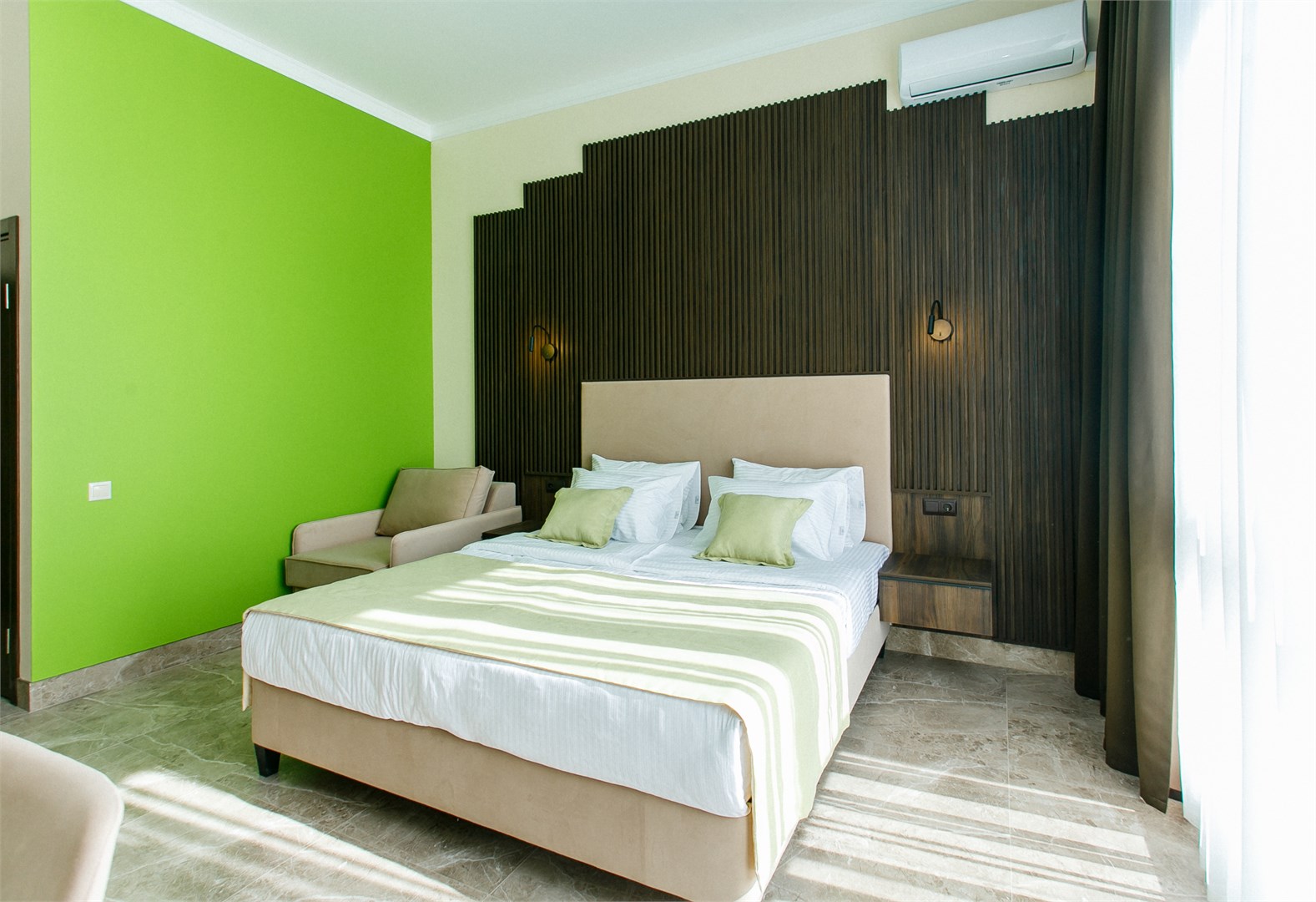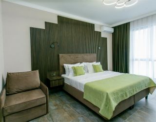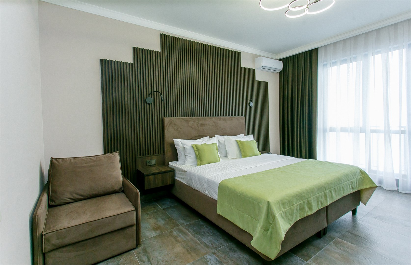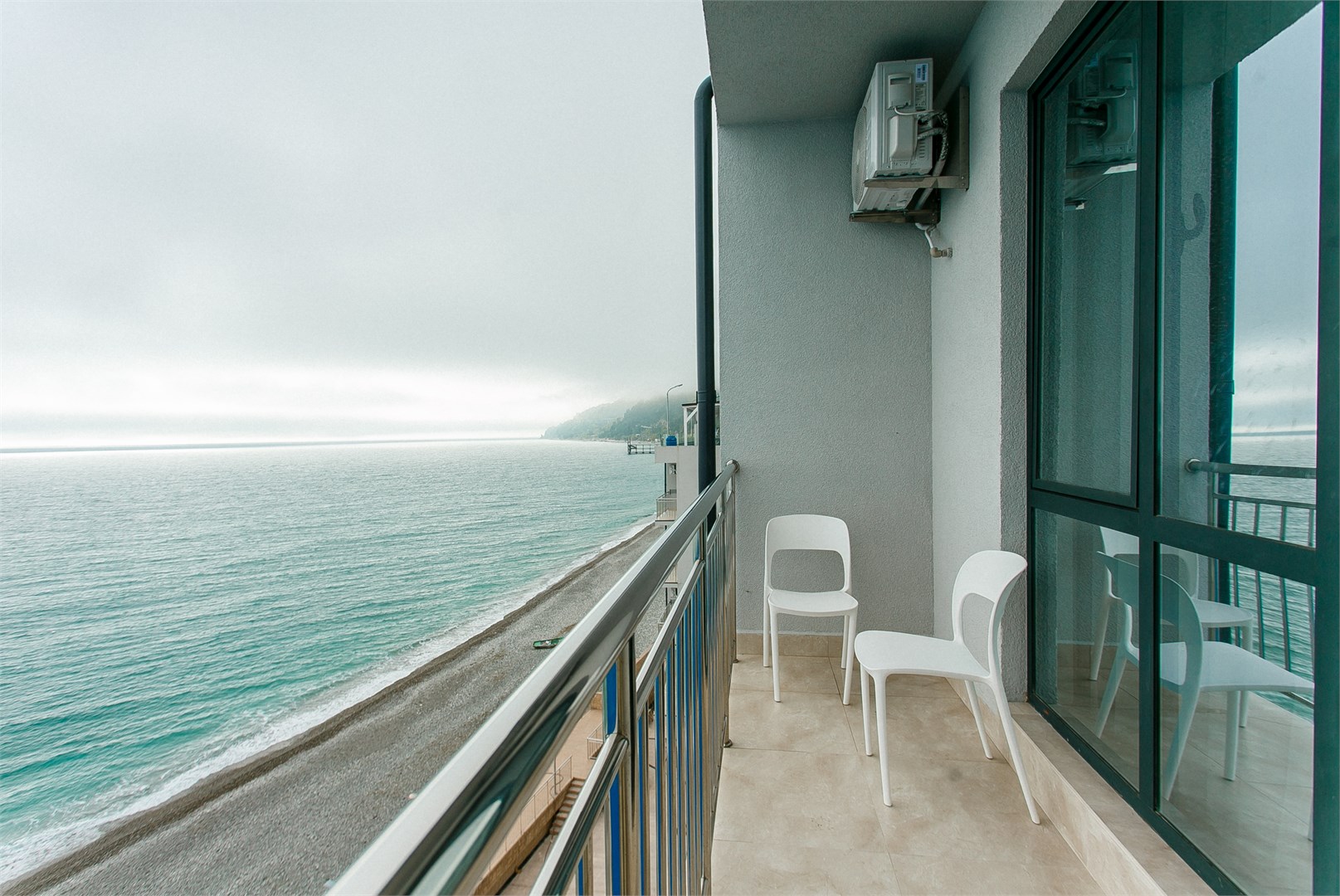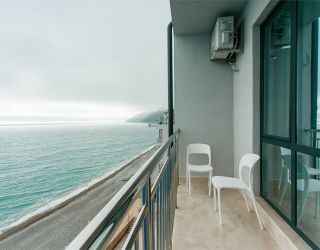В номерах современный дизайнерский ремонт, который создает атмосферу комфорта и элегантности, а из окон открывается захватывающий вид на море. Интерьер выполнен в современном стиле с использованием премиальных материалов и продуманной эргономикой пространства. Каждый номер оборудован просторным балконом, где можно насладиться морским бризом и живописными закатами.